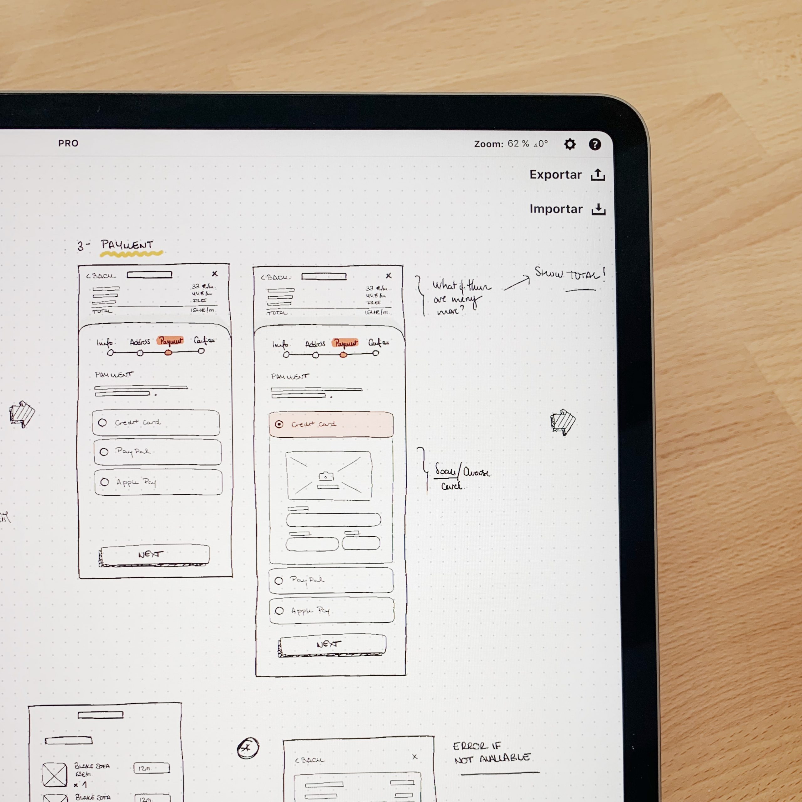 I started creating drafts of the web following a mobile-first approach, first a very rough version creating a flow of navigation for the main funnel, then in Sketch outlining the content sections, refining orders and elements, and mapping the different statuses in the UI.