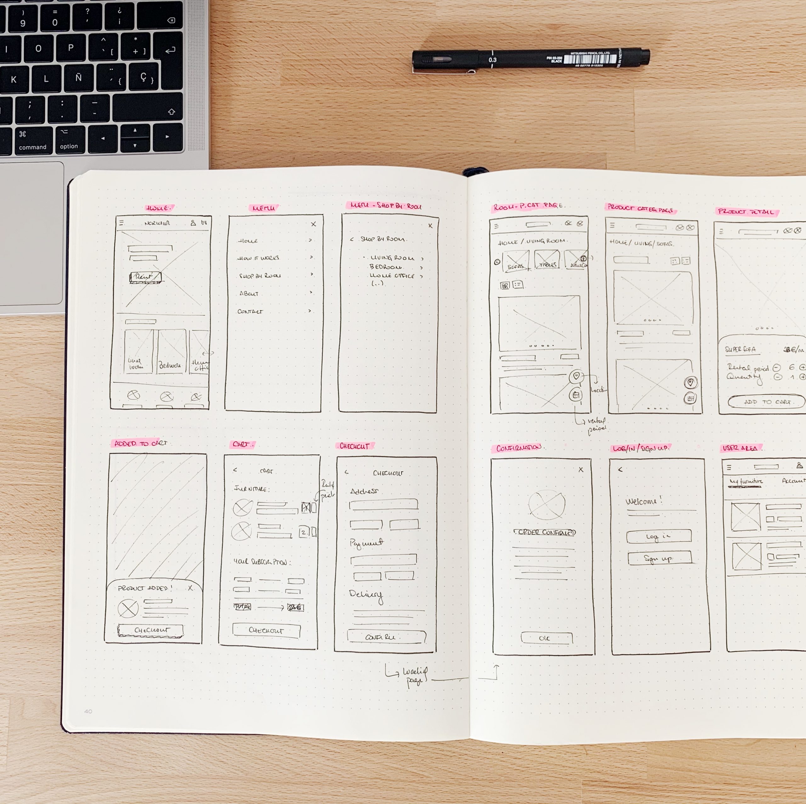 The goal at hand is that the user is able to rent a piece of furniture as easily and frictionless as possible, and this low-fi wireframes helped me outline and organize the interface focusing on helping the user achieve that end goal, instead of the specific UI details which I didn’t need at this stage of the product.