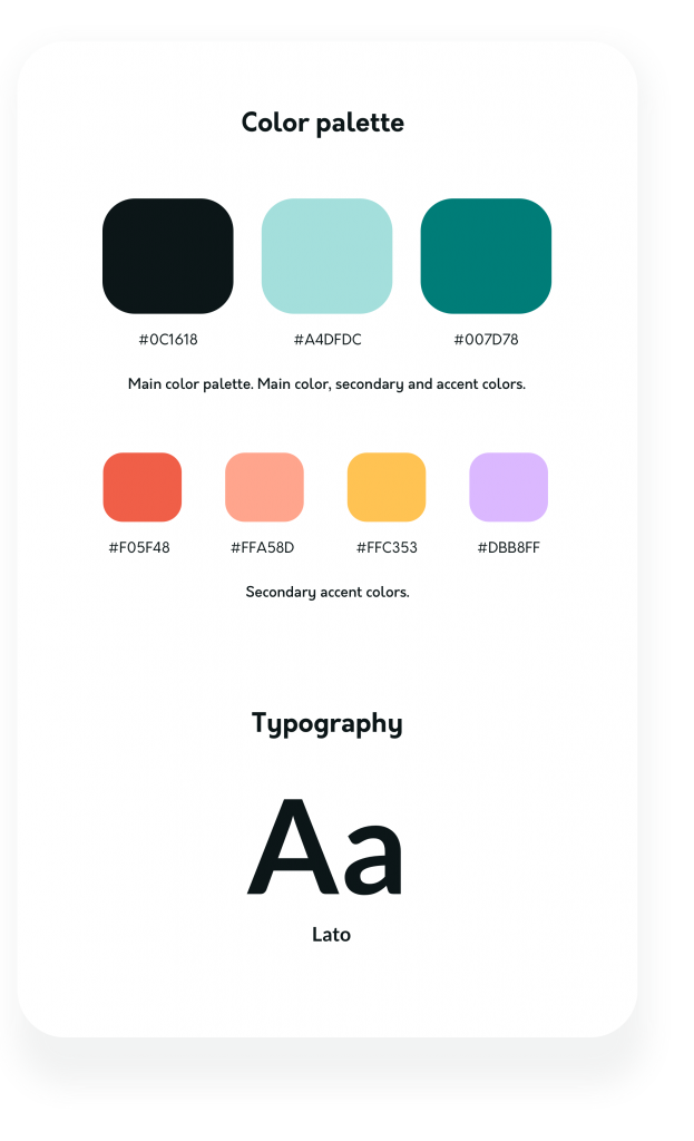 After some adjustments I moved to creating the brand, choosing a color palette and logo, and crafting the high-fidelity wireframes.