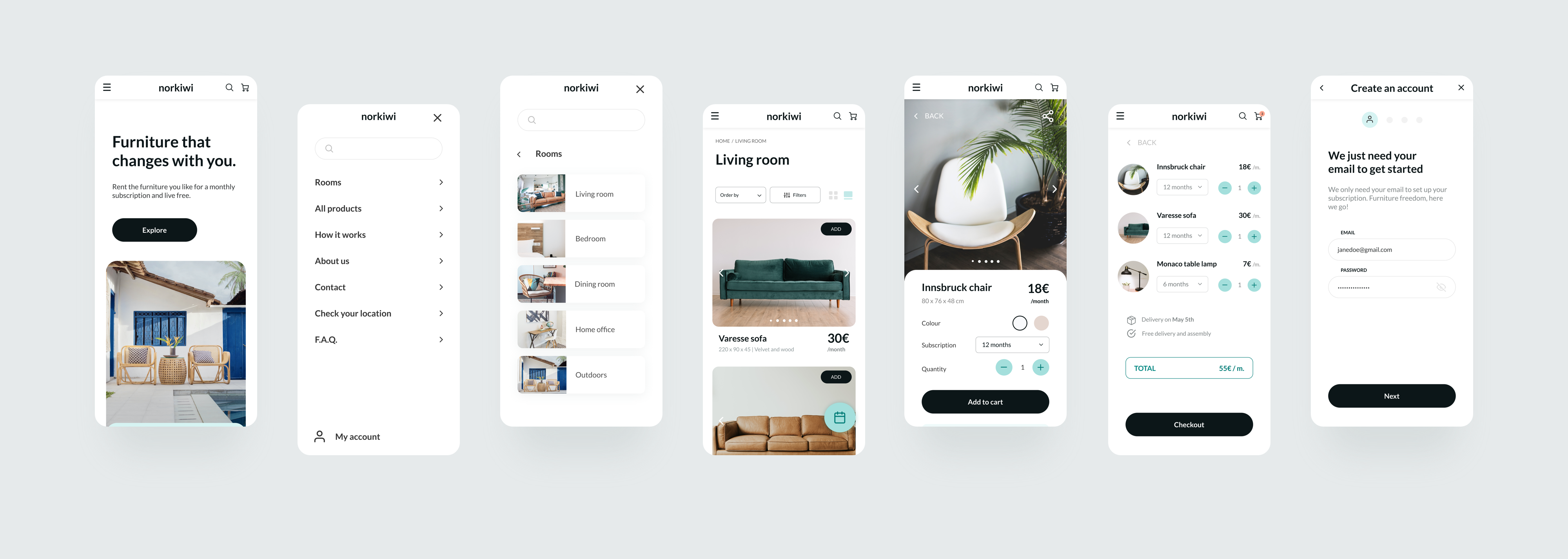 The idea for Norkiwi came up as I recently experienced the pains of moving to a new apartment where only the kitchen and bathroom are furnished (although as someone who has moved more than 6 times in her life, these past experiences contributed to the idea as well). I was having trouble trying to find pieces that were affordable, matched together, fit in the space, and didn’t have the typical mass-produced look. Weeks went by and I couldn’t decide because buying furniture was a commitment itself. After some research, I was able to frame the problem.